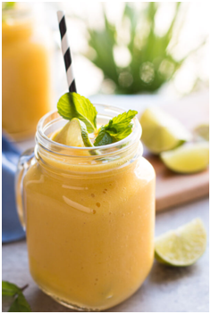 Băutura e gata și se poate ornamenta cu lime și mentă.
